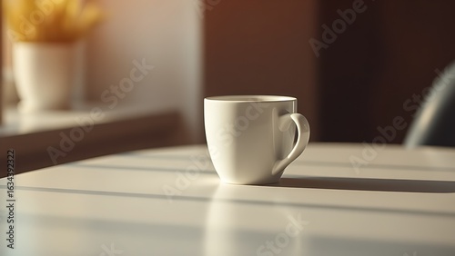 © mingfu, Obraz premium A warm and inviting coffee cup on a table with a shallow focus.