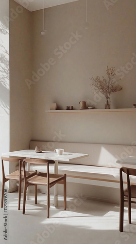 Fototapeta premium A warm and inviting coffee shop interior featuring minimalist decor and soft...