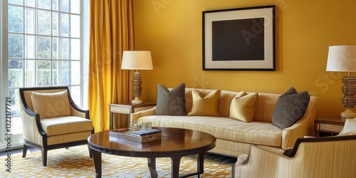 Fototapeta premium A warm and inviting living room with yellow color scheme