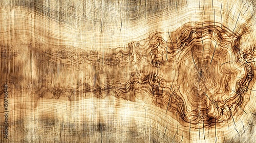 © Renny & Co., Naklejka premium A warm brown wooden surface with visible knots and smooth texture, providing a rustic and cozy atmosphere.
