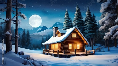 Naklejka premium a warm cabin in the snowy woods