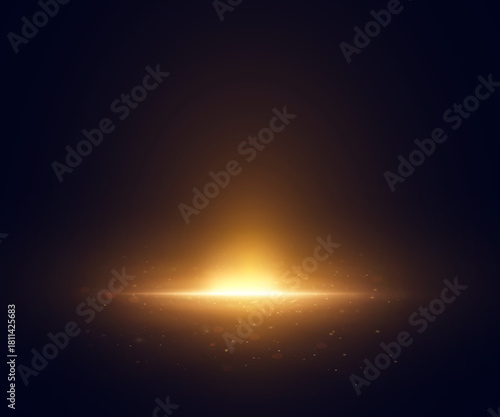© Valeriia, Naklejka premium A warm, glowing light rising from below, with a soft haze and shimmering particles against a dark background. A vector light effect for overlays, fantasy scenes, and atmospheric backgrounds.