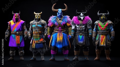 © Oleksandr, Obraz premium A warrior-themed NFT collection with different war paint styles and ceremonial gear.