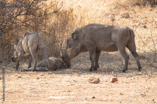© Darrell, Fototapeta premium A warthog mother attending to her young