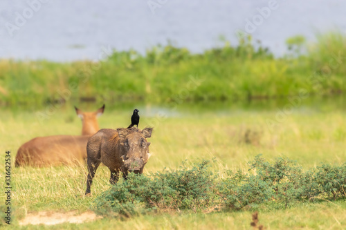 © Gunter, Fototapeta premium A warthog (Phacochoerus africanus) looking at the camera, Murchison Falls National Park, Uganda.