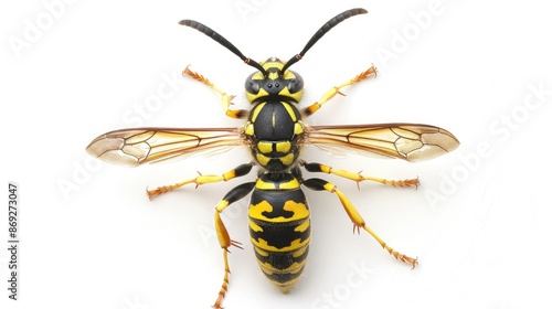 © Fotograf, Fototapeta premium A wasp sitting on a white surface, its bright colors standing out