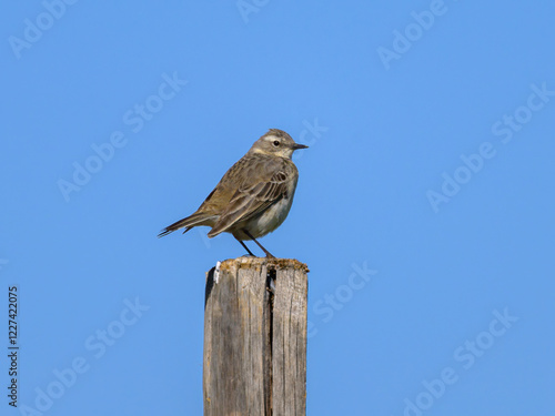 © Stefan, Fototapeta premium A Water Pipit standing on a wooden pole