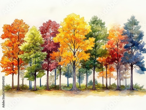 Naklejka premium a watercolor collection showcasing diverse trees in various styles and colors, celebrating the beauty of forests and the natural world