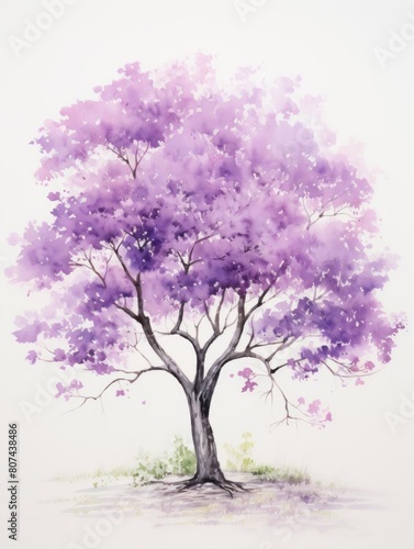 © Jinny787, Obraz premium A watercolor depiction of a colorful jacaranda tree