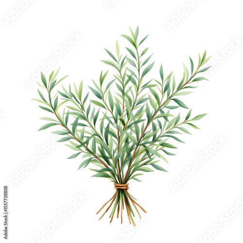 Obraz premium A watercolor illustration of a bundle of leafy green branches tied together...