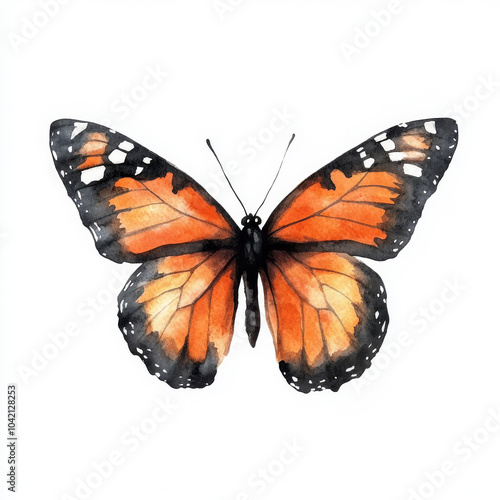 Fototapeta premium A watercolor monarch butterfly with striking orange and charcoal black wings,...