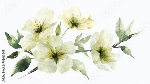 Fototapeta premium A watercolor painting of a branch of white and yellow flowers.