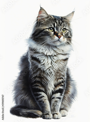 © Agnes, Fototapeta premium A watercolor painting of a cat. Portrait of a cat, design for booklet, cover, cat print. Generative AI