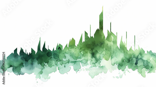 Naklejka premium A watercolor painting of a city skyline in shades of green.