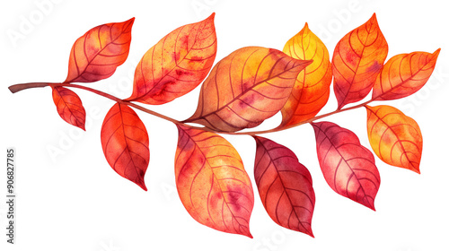 © MONWARA, Obraz premium A watercolor painting of a leafy branch with orange leaves