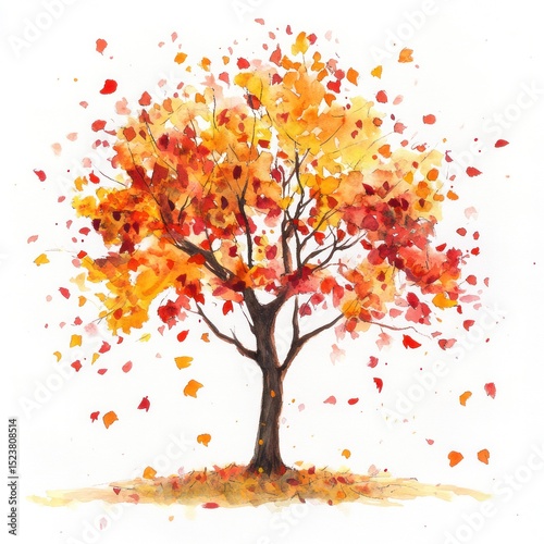© LyceeChee, Fototapeta premium A Watercolor Painting of an Autumn Tree Losing its Leaves