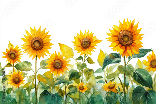 Fototapeta premium A watercolor painting of sunflowers on a white background