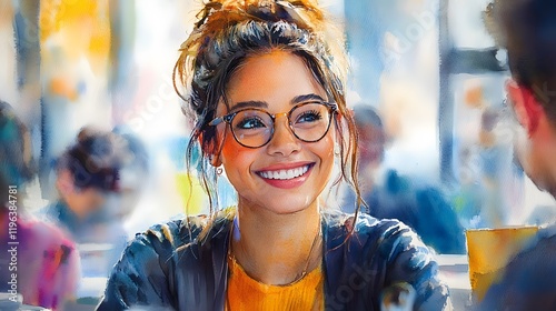 © Sarawut, Obraz premium A watercolor painting showing workers participating in a workplace wellness program with smiles