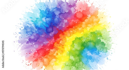 Obraz premium A watercolor splash pattern in vibrant rainbow colors