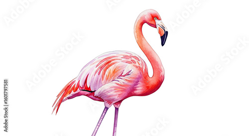 © Donnangelo, Fototapeta premium A watercolor style illustration of a flamingo standing on a black background in vibrant colors