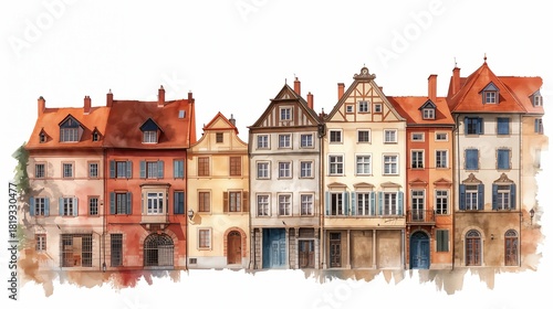 © Ardi, Fototapeta premium A watercolor style illustration showcases a row of European-style buildings in vibrant colors.