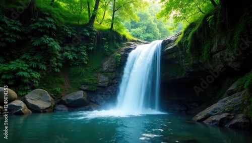 © AiGallery, Fototapeta premium a waterfall cascades down a rocky slope in the jungle, cascade, falls