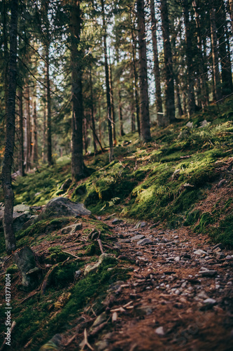 © Дмитро Григорчак, Obraz premium A waterfall in a forest a mountain