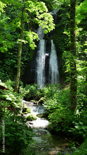 © natural_landscape, Naklejka premium A waterfall in the forest. Oirase Stream.