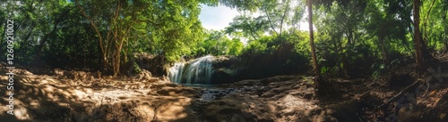 © Alexei, Fototapeta premium A waterfall is surrounded by rocks and trees in a tranquil forest