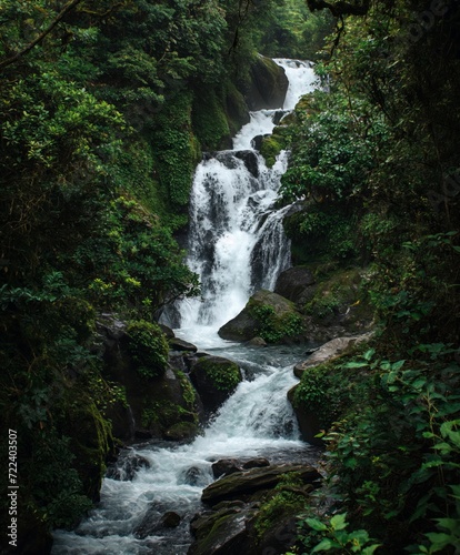 Naklejka premium a waterfall surrounded by tree leaves and moss
