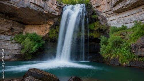 © Igor, Naklejka premium a waterfall that falls into the lake