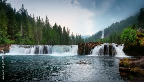 © Donald, Fototapeta premium A waterfall with a forest in the background