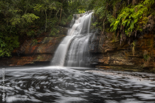 © Geoff, Fototapeta premium a waterfall with trees on the side of a river
