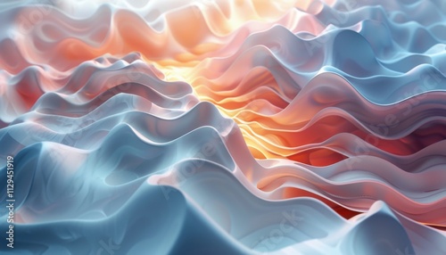 © RAZA, Obraz premium A wave of blue and white with a red line in the middle