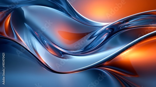 © progressman, Fototapeta premium a wavy design in blue and orange colors