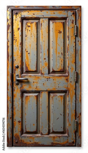 © Thirasak, Naklejka premium A weathered gray metal door panel in golden shine style, focusing on detail and isolation