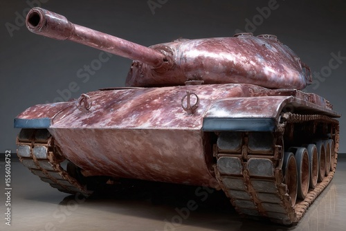 © ARSHDEEP, Obraz premium A weathered military tank showcases its rugged texture and history in a dramatic light.