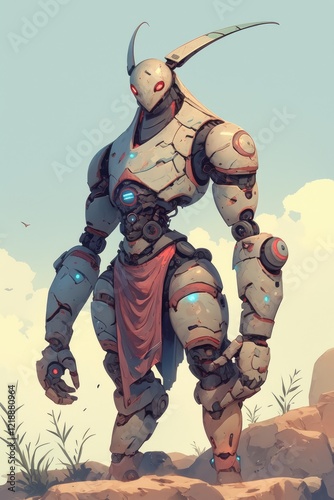 © boler, Fototapeta premium A weathered robot stands in a desert landscape
