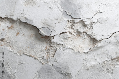 © Shelley, Obraz premium A weathered stucco wall features intricate cracks and creases, providing a textured backdrop. The right side offers ample copy space, perfect for blending design elements.