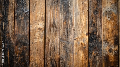 © An, Naklejka premium A weathered wooden fence with a rustic, aged appearance.
