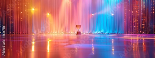 © Viktor, Obraz premium A well-lit stage features a podium positioned in its center, accompanied by lights flanking the sides