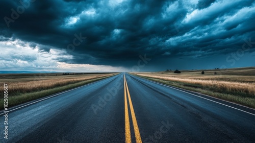 Naklejka premium A Wet Road Under a Dramatic Stormy Sky