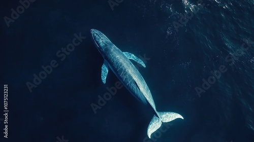 Fototapeta premium A whale is swimming in the ocean. The whale is large and has a long tail. The...
