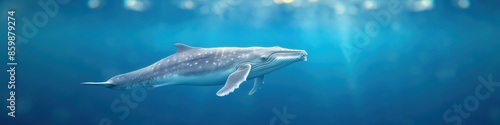 Fototapeta premium A whale is swimming in the ocean, underwater scene with sun rays, wide...