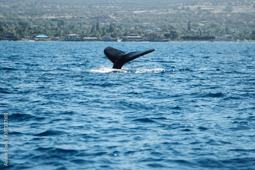 © kingmauri, Fototapeta premium a whale tail fin in the water