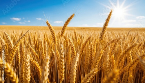 Fototapeta premium a wheat field on the background Golden wheat crop with sunlight