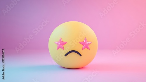 Fototapeta premium A whimsical cartoon emoji with star-shaped eyes and a frown, set against a...