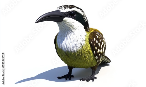 Naklejka premium A whimsical creature with the body of a bird and the face of a toucan, featuring vibrant colors and detailed feathers