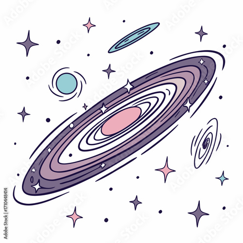 Fototapeta premium A whimsical galaxy illustration, showcasing swirling cosmic dust, twinkling stars, and distant planets in a dreamy, colorful celestial dance