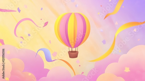 Obraz premium A Whimsical Hot Air Balloon Floating in a Pastel Dreamy Sky